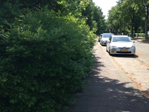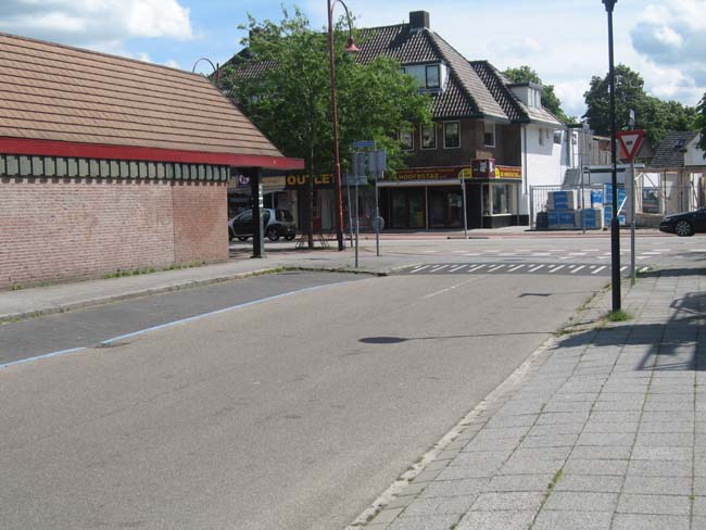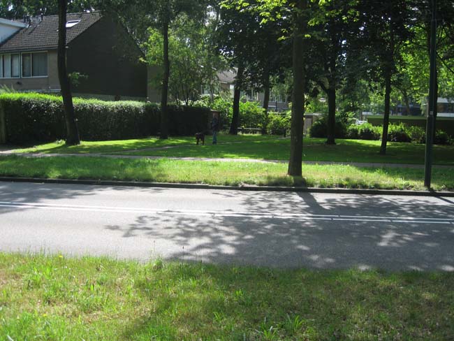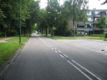 van de band - eveneens op de Vrijheidsweg - rijden ze verder met eengezinswoningen op de achtergrond welke aan de Wiardi Beckmanstraat