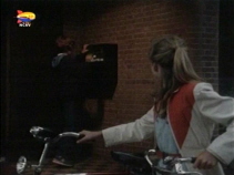 en flats op de achtergrond. In een tweede scène krijgen ze een lekke band en staan ze stil om de band te verwisselen. Deze scènes zijn
