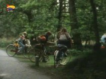 op een fietspad een paar honderd meter vóór de camping opgenomen, terwijl het shot waarbij de rest van de groep van achteren te zien is net ná het passeren van de camping is gefilmd (zie bovenste foto's).