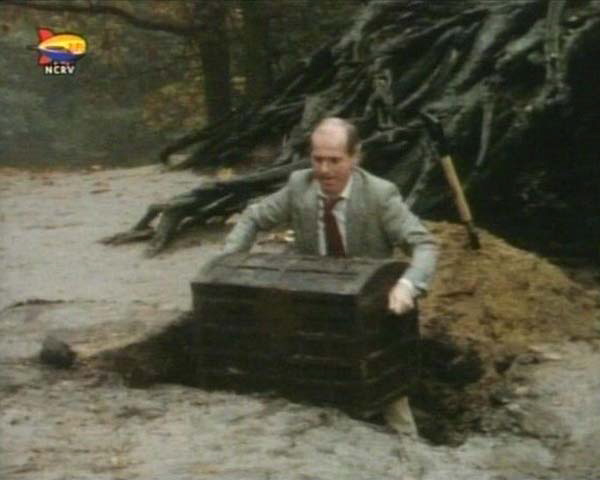 De scènes waarin Senior het kistje met de munten en schatkaart begraaft en later