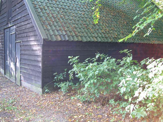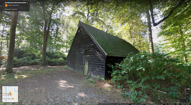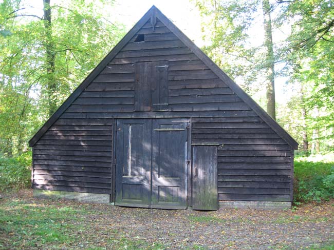 De boevenschuur bevindt zich op het terrein achter Landhuis Schaep en Burgh, Noordereinde 60 te 's Graveland.