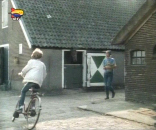 Karin van Ee heeft geen filmkleding aan; dat kan betekenen dat ze tijdens één van haar paardrijlessen even langskwam.
