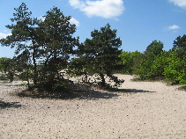 De onderstaande foto is ergens bij de Lange of Korte Duinen genomen; op de achtergrond schemert de kindercamper door de bomen.