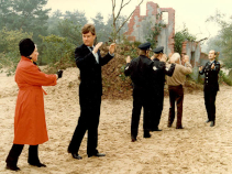 - Het vliegtuigje steeg op en wierp de parachute af boven vliegveld Soesterberg (waar ook de controle door de douane werd gedraaid, maar ook de droomscène van Thomas met de verklede "dames" op brommers);
