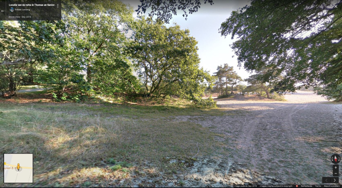 Google Streetview vrachtwagenchauffeur en Thomas arriveren bij de zandvlakte